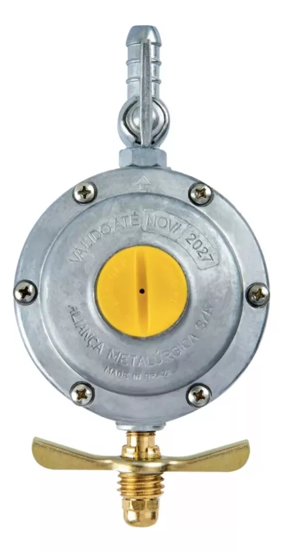 Regulador Gás Aliança 2kg/h 506/01 Cinza Estágio Único - Montado, pronto para ligação.